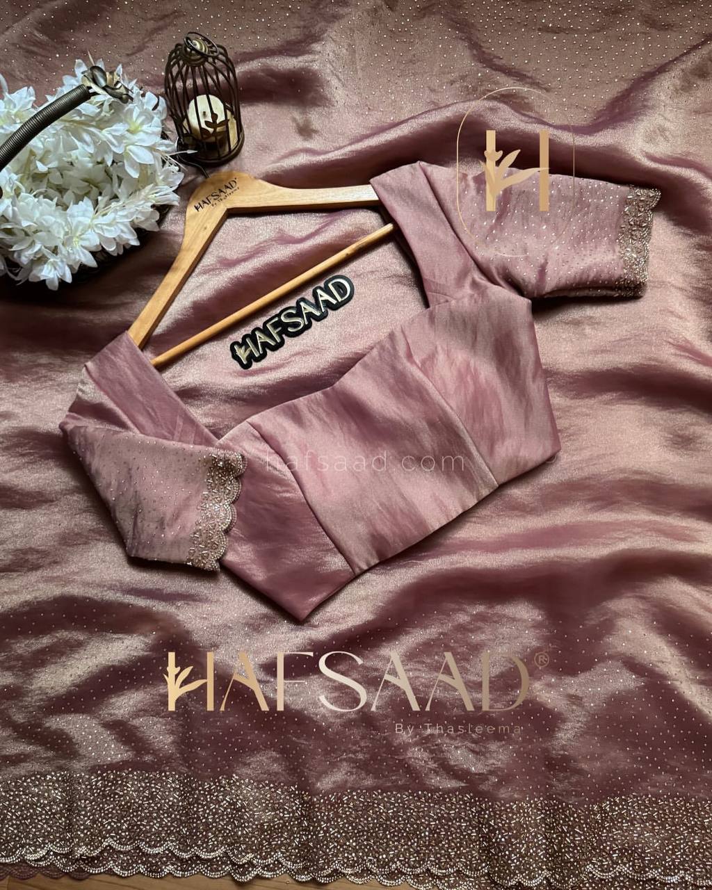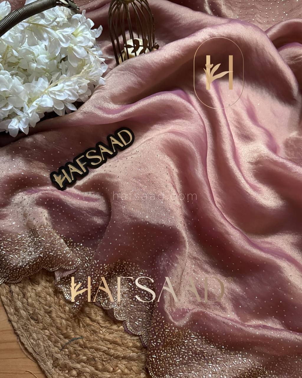 Sparkling pink Space Silk saree, NC-5434, features original Jarkhan Diamond work on saree and blouse. Rs. 6,299.00/-.